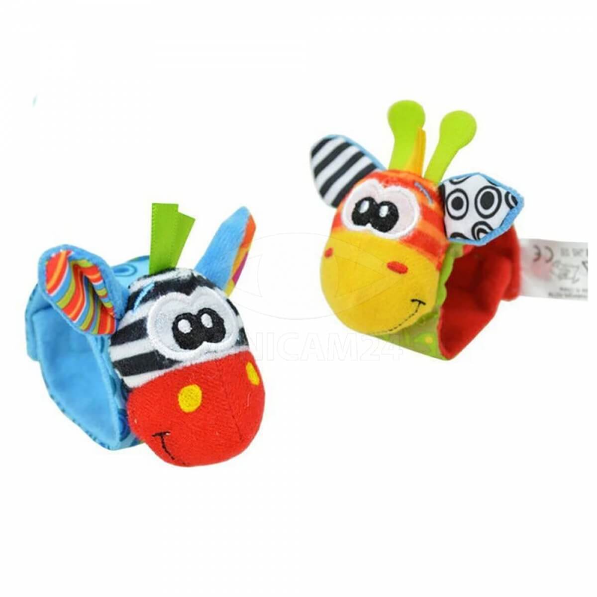 Детские погремушки Mopet носки, браслеты с животными в виде зебры и жирафа подойдут для малышей с первых дней жизни. Выполнены из мягкого плюша, он не провоцирует раздражение на нежной детской коже и не вызывает аллергию. Погремушки стилизованы под милых зверушек: по центру есть аппликация в виде забавной мордочки, сверху расположились ушки. За игрушкой легко ухаживать: достаточно стирать ее по мере загрязнения. При желании погремушку можно носить как браслет – для этого на нижней части предусмотрено специальное крепление.